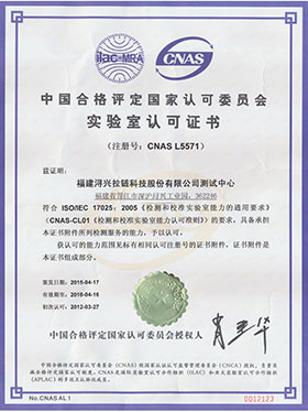 5月12日,測試中心收到中國合格評(píng)定國家認(rèn)可委員會(huì)(CNAS)發(fā)來通過復(fù)評(píng)、擴(kuò)項(xiàng)審核的通知及證書,標(biāo)志著公司測試中心的發(fā)展買上了新臺(tái)階。